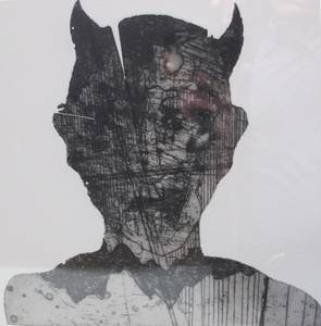 Radierung 3/13 von 2003, Teufel gesägt 30 x 30 cm